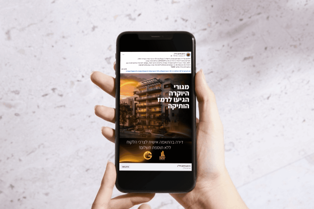 קמפיין הדיגיטל לפרויקט המגורים החדש בראשון לציון כולל יצירת פוסט מעוצב שמבליט את חוויית המגורים, את המיקום המבוקש ואת יתרונות הפרויקט. העיצוב מותאם לקידום ממומן, משלב ויזואליות ברורה וקריאה לפעולה, ומיועד להגדיל חשיפה ולייצר לידים איכותיים ליזם.
