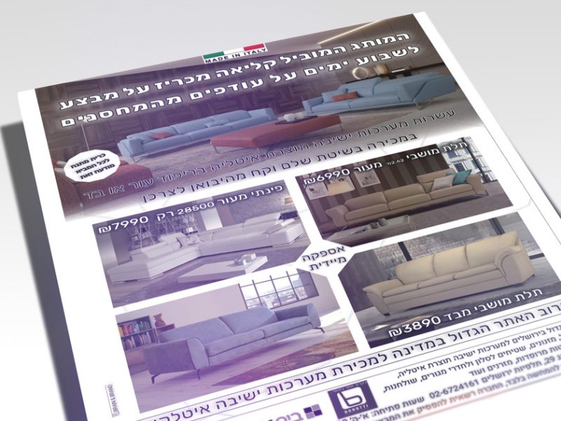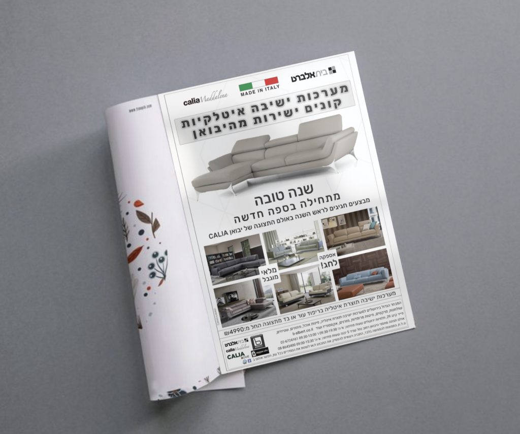 פרסום בעיתונים למבצעי ראש השנה במתחם לעיצוב הבית בבית אלברט. משרד פרסום Brain&Brand